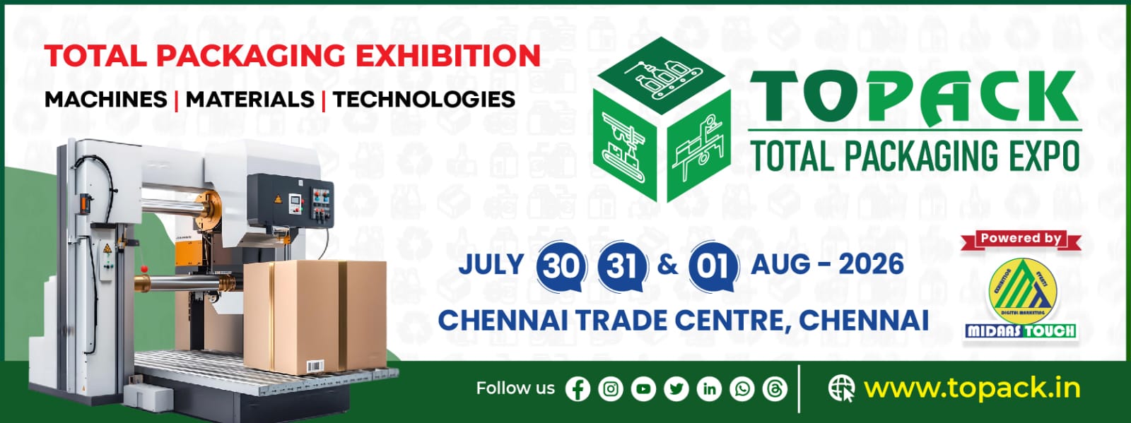 TOPACK 2026 - Total Packaging Expo 30, 31 July & 1 August 2026 Chennai Trade Centre – Hall 1 | Chennai, India